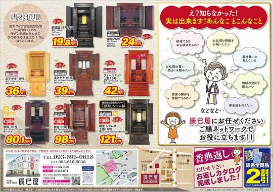 北九州市八幡西区の『辰巳屋』は、お仏壇・仏具・贈答品の専門店です。